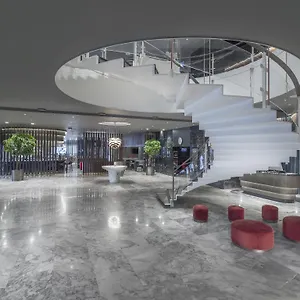 Das Radisson Collection Royal Hotel, Kopenhagen, ein beeindruckendes 5-Sterne-Hotel, repräsentiert Luxus und Eleganz. Dieses einzigartige Hotel ist ein prominentes Merkmal der städtischen Landschaft und bietet seinen Gästen ein luxuriöses Erlebnis, das auf die Feier des transatlantischen Reisens abgestimmt ist. Die glänzenden Oberflächen und feinen Details der Lobby spiegeln die exklusive Atmosphäre wider, die sich durch das gesamte Hotel zieht. Das kürzlich renovierte Hotel zollt der Erbschaft von Arne Jacobsen Tribut, angeführt von den harmonischen und ausgeklügelten Designs, die sich vom Eingang bis zu den Türgriffen erstrecken.